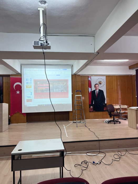 Gerçekleştirilen çalışma kapsamında, salonun tavanına sabit projeksiyon cihazı montajı yapılmış, gerekli kablolama ve bağlantı altyapısı düzenlenerek sistem kullanıma hazır hale getirilmiştir. Kurulum sürecinde teknik ekip tarafından cihaz yerleşimi, görüntü aktarımı ve sistem testleri titizlikle gerçekleştirilmiştir.